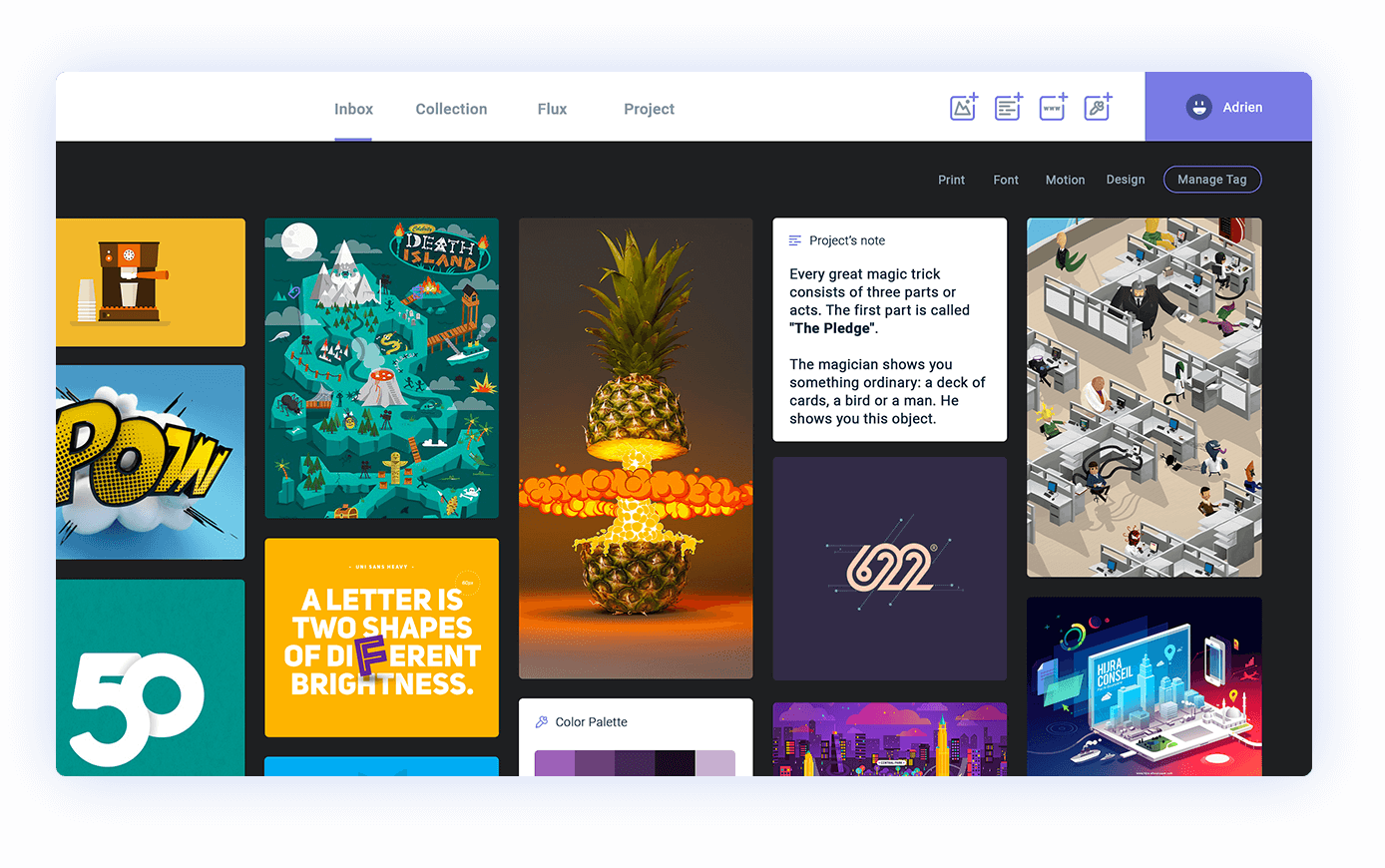 Collect.io is an open source project. It let you save everything that inspire you and store anywhere you want. Organise, in board, all your visuals resources, links, notes or color. Create projects and collaborate with your team.